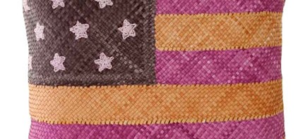 The pop-art inspired Nation on Vacation Pillow by Lance Wovens