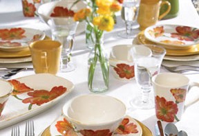 Celebrate spring with a pretty profusion of poppies! A cheerful bouquet brightens up this hand-painted dinnerware by Vietri. Poppies are popping up all over, according to Houzz.com users. Pick some up to liven up your table.