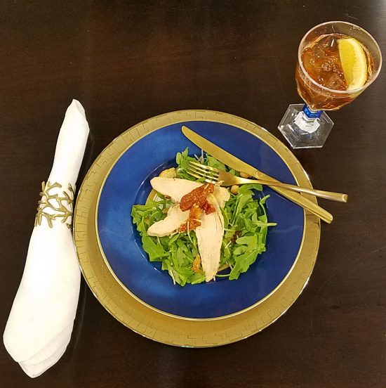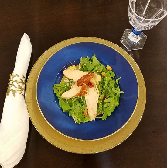So quickly add a napkin ring … gold coral looks good here.